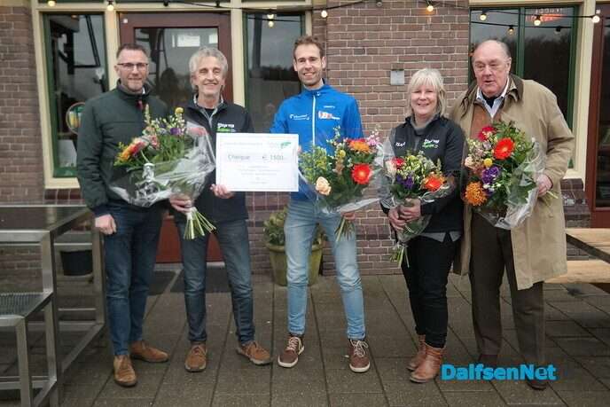 De organisatie Strijd van Salland ontving in grand-café Het Oude Station een cheque van 1.500 euro van de stichting Station tot Station Loop.